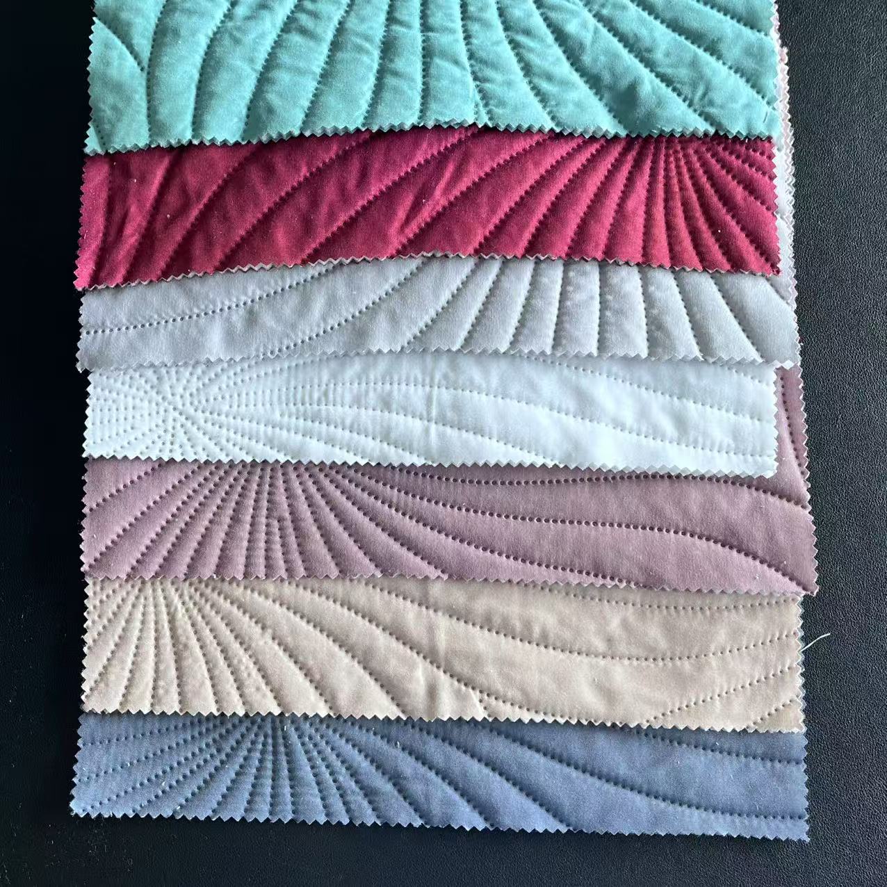 Momenteel beschikt het bedrijf over het volgende materieel: 5 sets rekmachines en 7 kromtrekwagens. We houden ons voornamelijk bezig met blanco polyesterstof, verschillende specificaties van geborstelde stof, bedrukte en geverfde stof, beddengoed en andere huishoudtextielproducten.